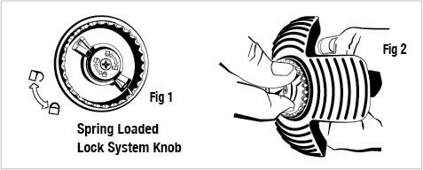 Vri låsen / låsesystemmekanismen (Fig. 1) mot urviseren. Metallpiggene kommer automatisk ned fra innsiden av doppskoen.